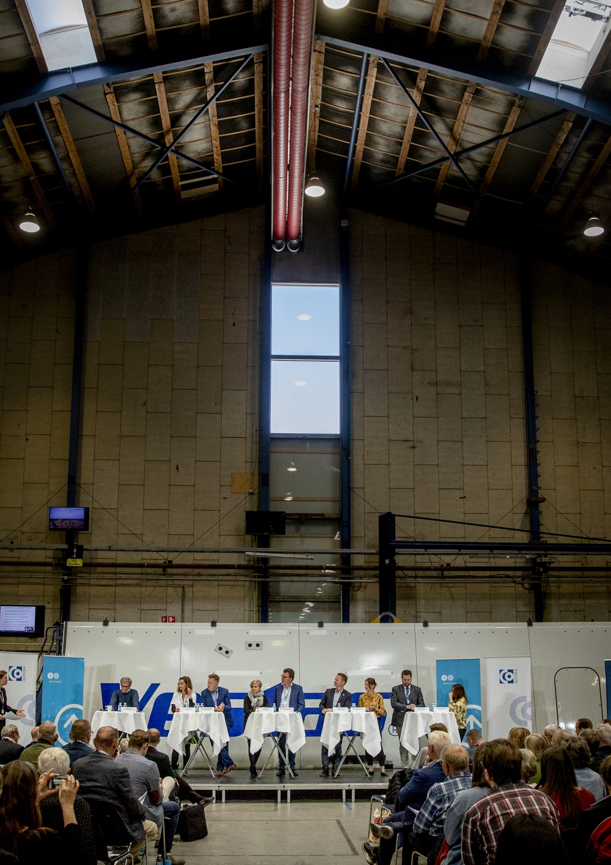 Sammen med Dansk Industri havde CO-industri den 15. maj inviteret ni partiers spidskandidater til Europa-Parlamentsvalget den 26. maj til erhvervspolitisk debat i en af Vestas store lagerhaller i Ringkøbing. Og med lyden af vindmølleproduktion og travle gaffeltrucks som baggrundstoner debatterede de ni kandidater deres holdning til grøn energi, klima, frihandel og arbejdskraftens frie bevægelighed foran et stort publikum af tillidsfolk, gymnasieelever og lokale interesserede.